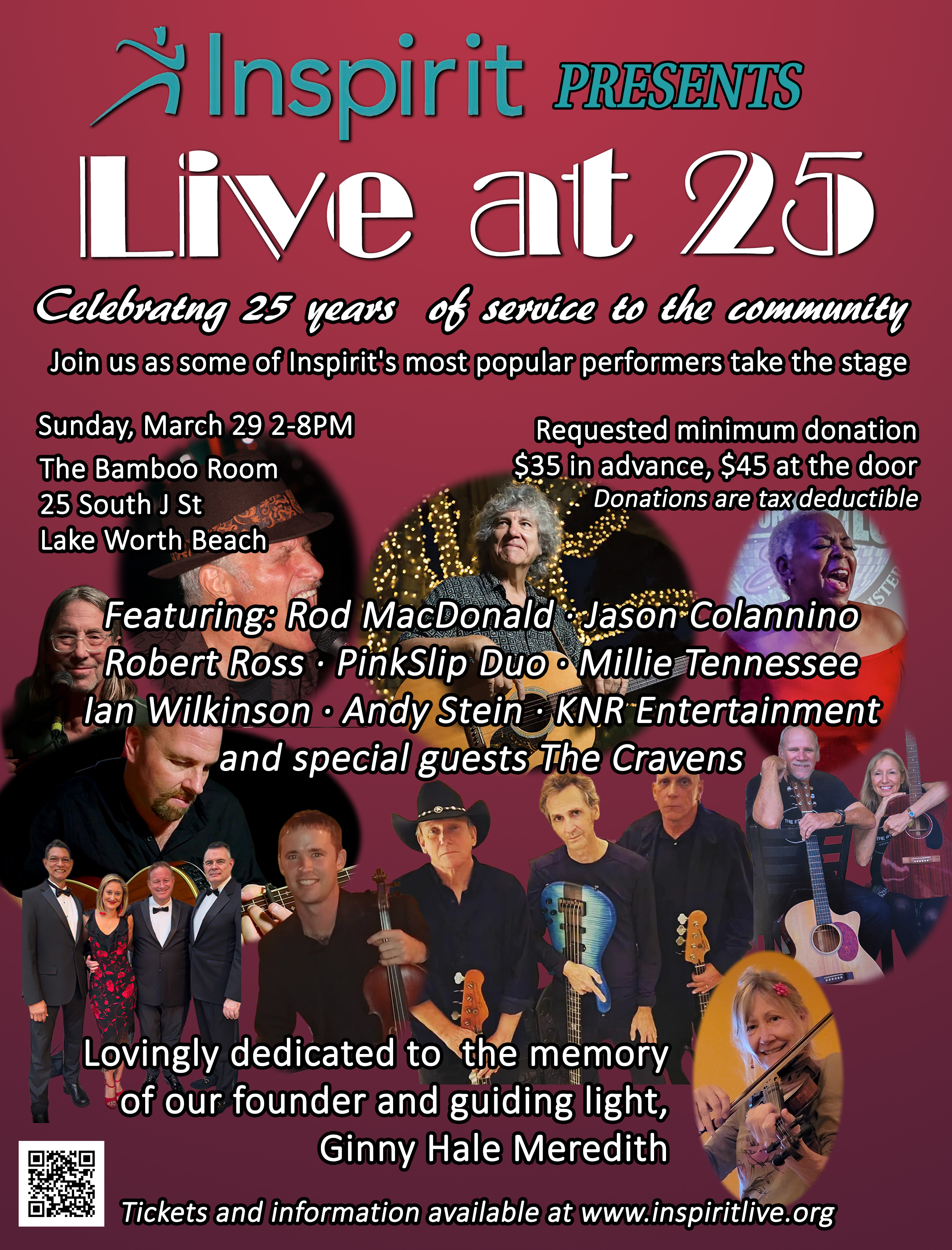 InSpirit is a non-profit organization that provides entertainment for people in rehabs, senior centers, nursing homes, assisted living facilities, etc., while also providing work for musicians to entertain them. And Rudy’s is a music venue in Lake Worth.
